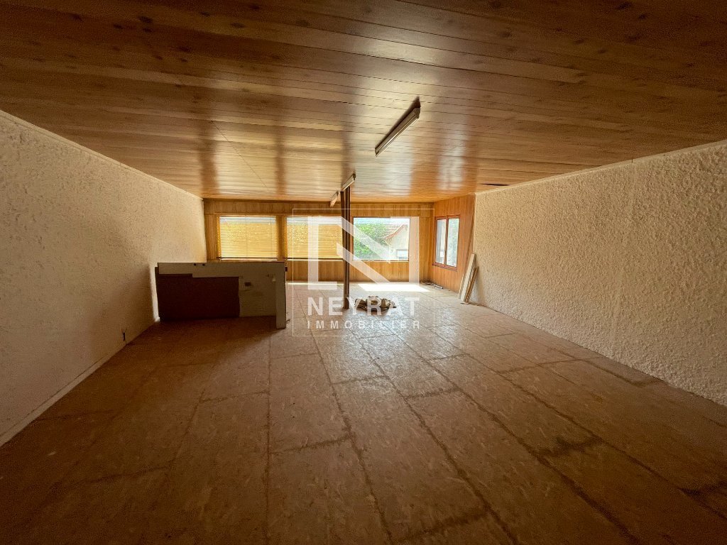 Le rez-de-chaussée offre un espace d'accueil d'environ 35 m², complété par des sanitaires, À l'étage, deux grandes pièces à aménager selon vos besoins : une première pièce de 29 m², adaptée pour des archives, du stockage ou un bureau individuel, et une seconde pièce de 74 m²,. L'agencement laisse une réelle liberté d'organisation pour concevoir un lieu conforme à votre activité.