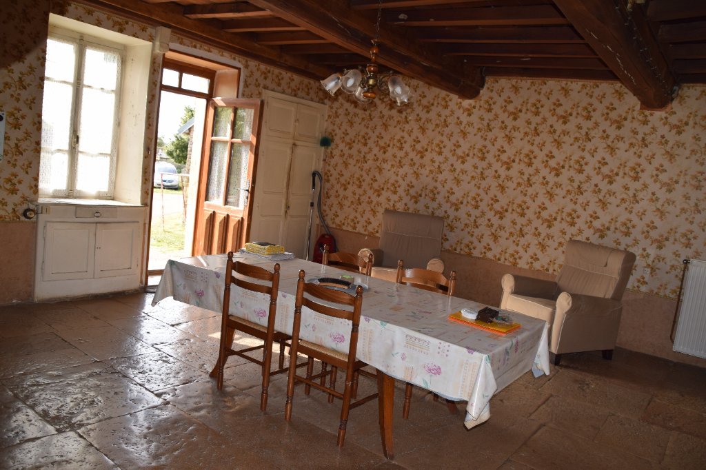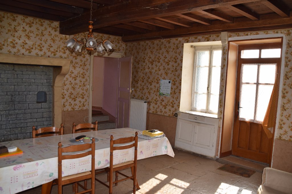 Une salle à manger, une cuisine donnant sur une terrasse à l'arrière, 3 chambres, une salle de bains, WC.
