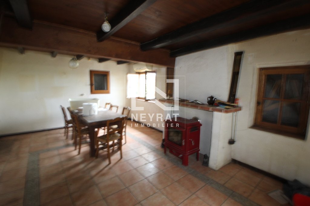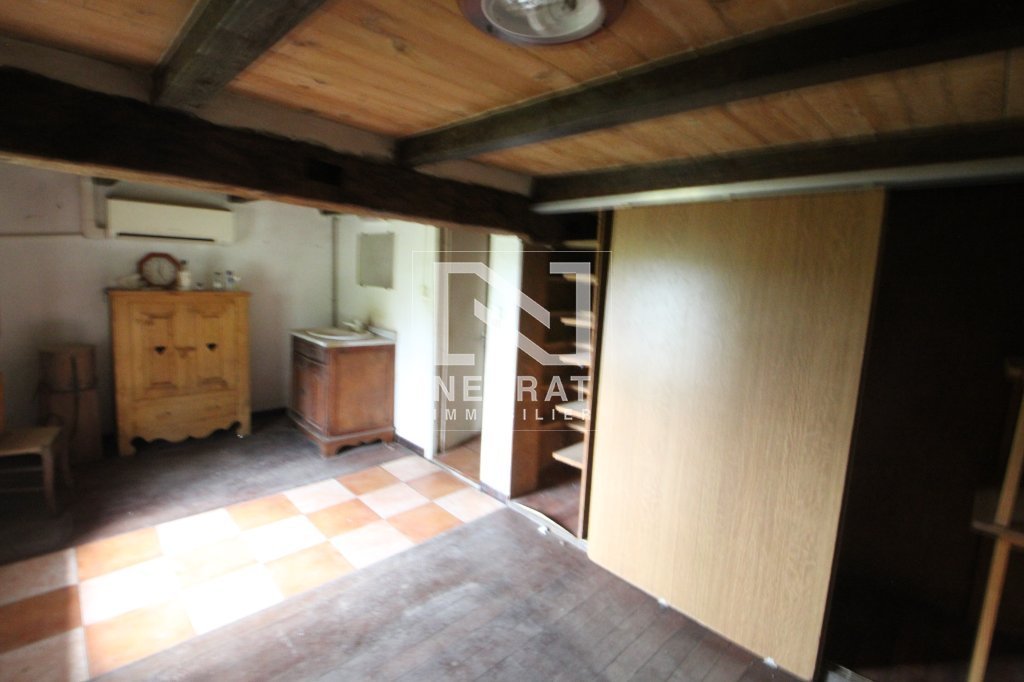 Au rez de chaussée: 1 pièce principale avec poêle bois et climatiseur réversible, 1 coin cuisine buanderie avec douche et wc, 1 chambre, 1 local cave accès extérieur,