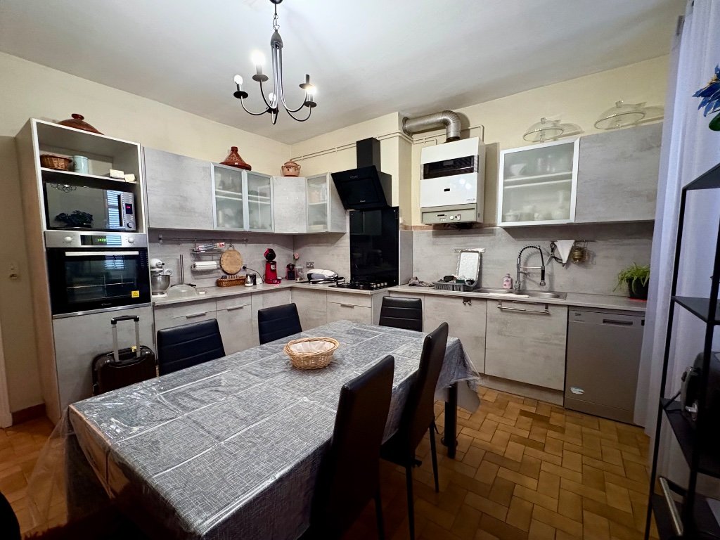 Au premier étage : un bel appartement composé d'une cuisine équipée et aménagée, une salle de douche, un wc séparé, un salon, un séjour et trois chambres.
