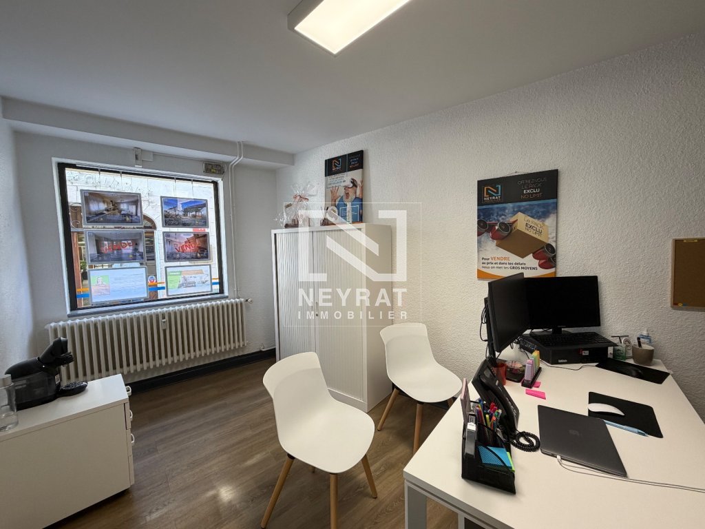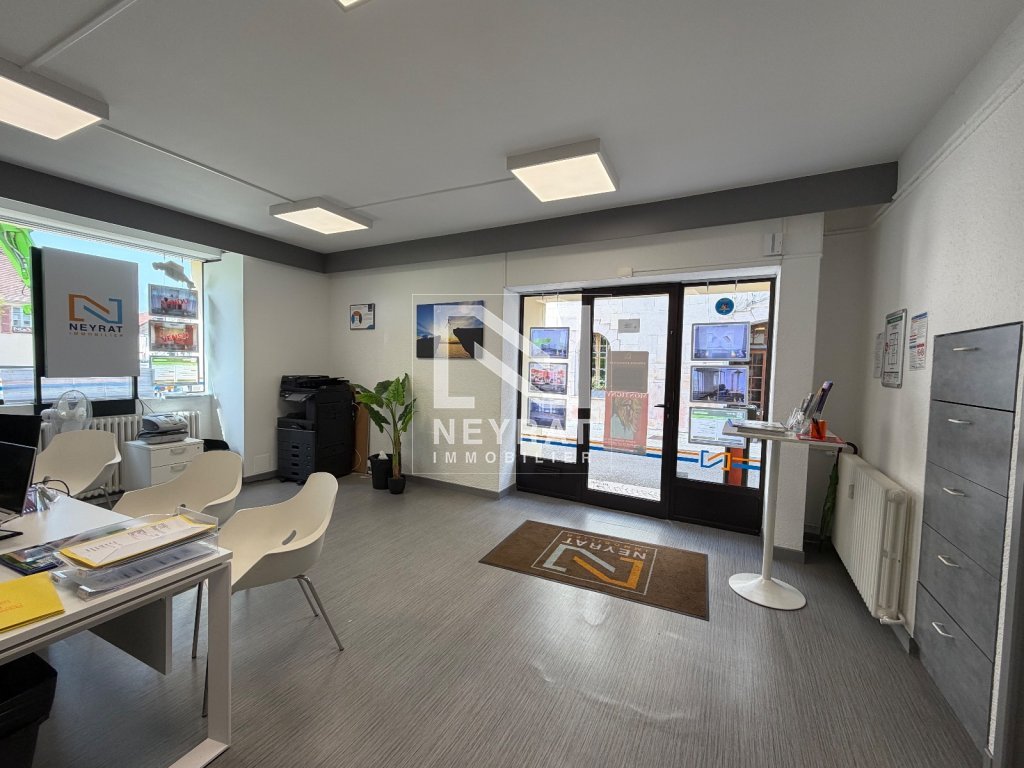 Un local commercial loué d'environ 94 m², comprenant un espace accueil, trois bureaux, une salle de réunion, sanitaires et espaces de rangement.