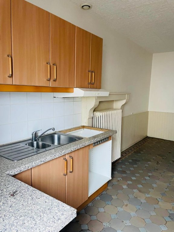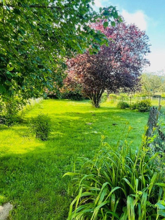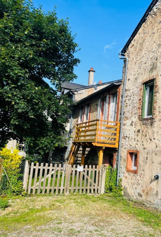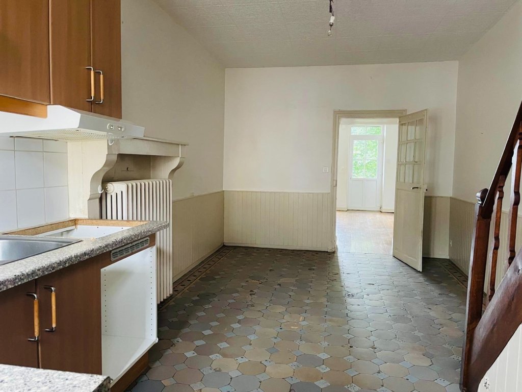 Maison de village type 3 en duplex de 77m² avec séjour cuisine, une salle de bain, un WC, deux chambres, cour et jardin d'environ 150m² et 2 caves. CC fuel.