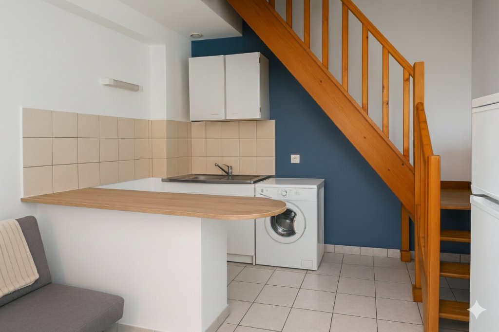 Chaque studio/T1 comprend au rez-de-chaussée : une pièce de vie avec cuisine ouverte ; à l'étage : un dégagement, une chambre mansardée et une salle d'eau avec WC.