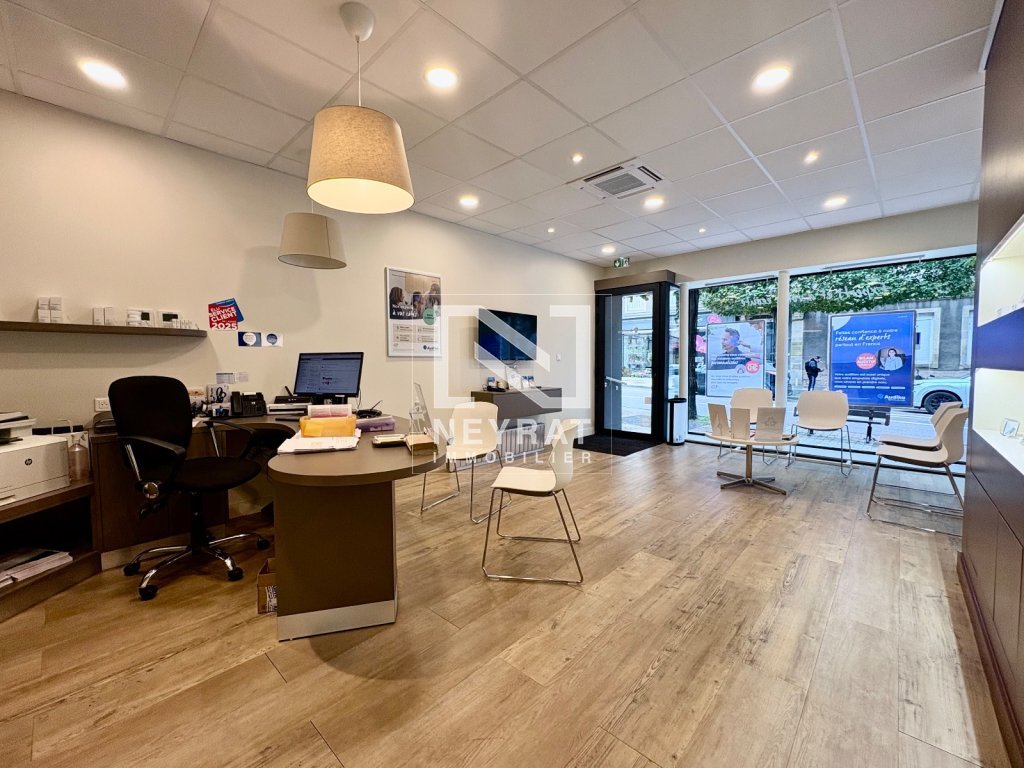 Agencement pratique et fonctionnel : l'espace s'organise autour d'un accueil visible depuis la vitrine, un bureau secondaire, lui aussi doté d'une vitrine, deux pièces dédiées au stockage offrent des volumes utiles pour l'approvisionnement ou l'archivage, tandis qu'un WC complète les commodités.