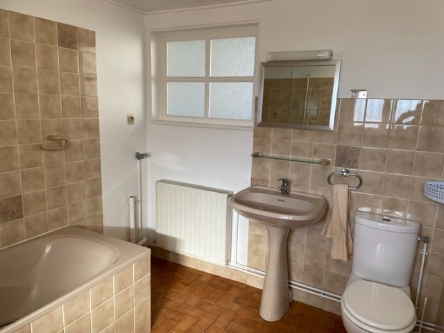 PAVILLON MITOYEN DANS QUARTIER CALME COMPRENANT CUISINE AMENAGEE ET EQUIPEE, SEJOUR, 3 CHAMBRES, PETIT JARDINET DEVANT, TERRASSE ET PELOUSE SUR L ARRIERE AVEC CABANON, CAVE, CHAUFFAGE IND. GAZ LOYER 680 € ET 50 € D ACOMPTE SUR CHARGES