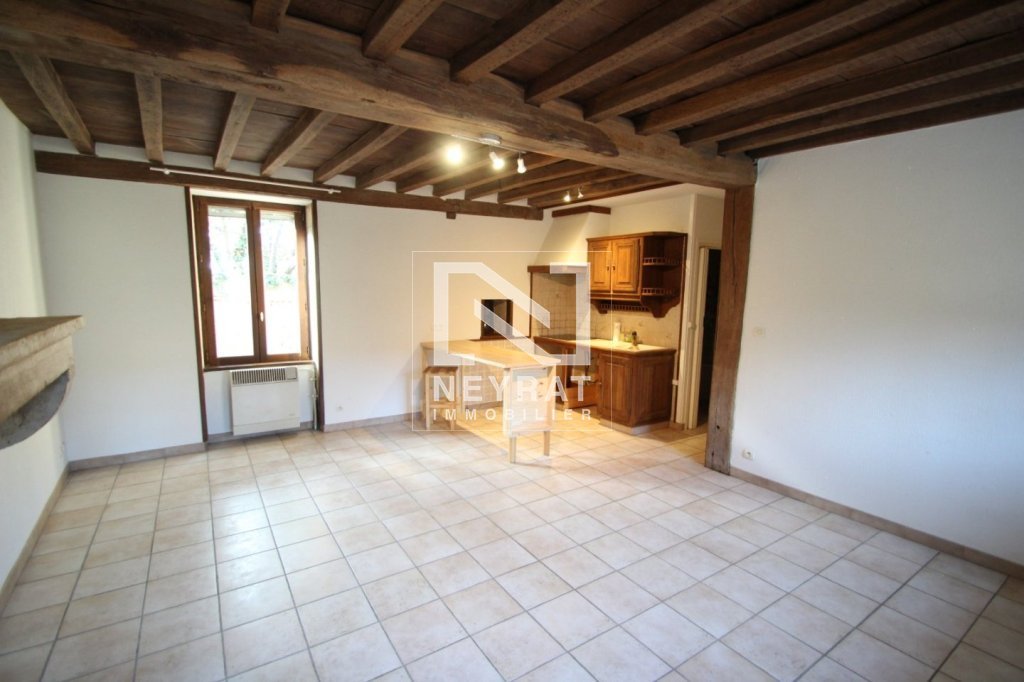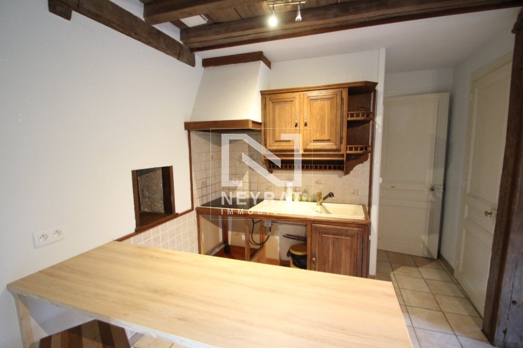 Maison de village comprenant séjour avec cheminée ouvert sur cuisine meublée et équipée (hotte et plaque de cuisson), une chambre, une salle de bains et un WC. Un abri véhicule ouvert. Maison sans terrain.
