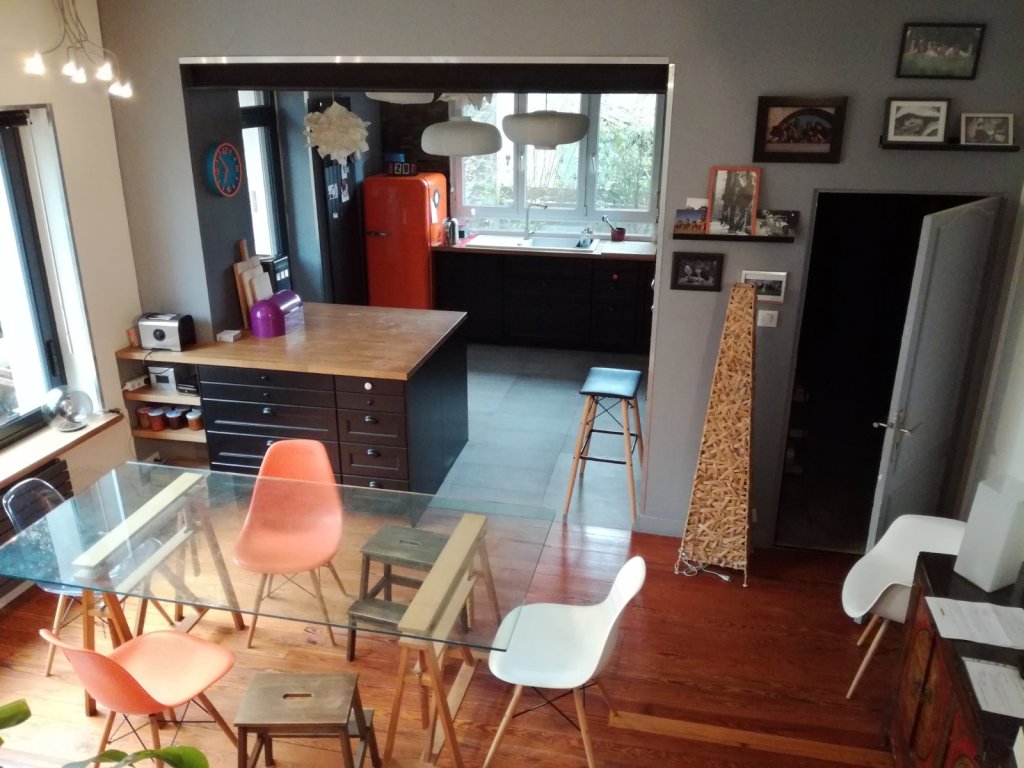 Au rez de chaussée: salon, salle à manger avec cuisine équipée et aménagée, WC
