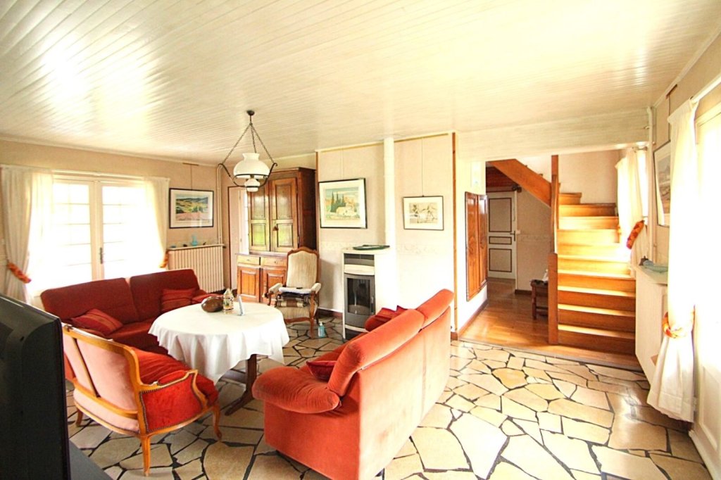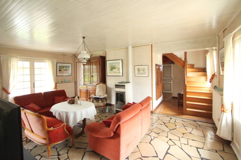A l'étage une salle de bains, un WC, un pallier de distribution, trois chambres, un grand salon et un grenier.