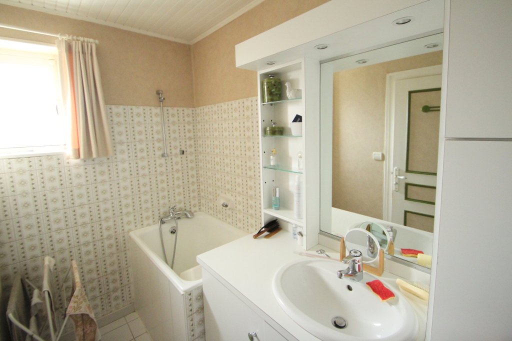 -Au RDC une entrée, un salon, un coin bureau, une salle à manger, un garage, une cuisine, un couloir, un placard, une chambre, un WC et une salle de bains.