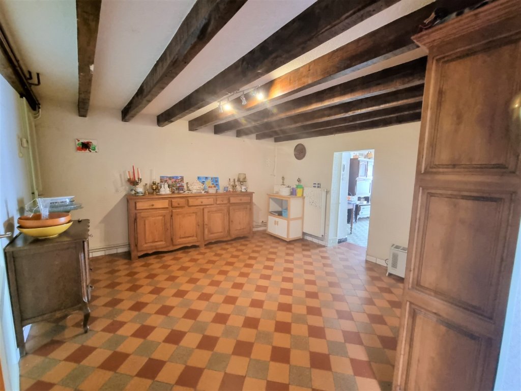 Au cœur du village Ensemble immobilier composé d'une maison de village de 4 pièces principales de 118 m² sur deux niveaux comprenant au rez-de-chaussée, une véranda donnant accès à la chaufferie, une entrée, une salle à manger, une cuisine, un salon, une salle de douche et un toilette séparé. A l'étage, palier desservant deux chambres et une salle d'eau avec W.C.