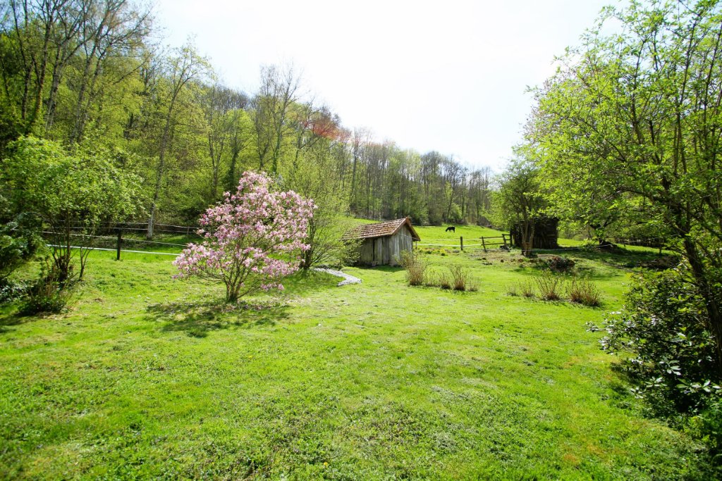 Outre l'emplacement exceptionnel, le terrain est divisé en plusieurs espaces, poulailler, jardin potager, accueil équidés. une pièce avec son four à pain.