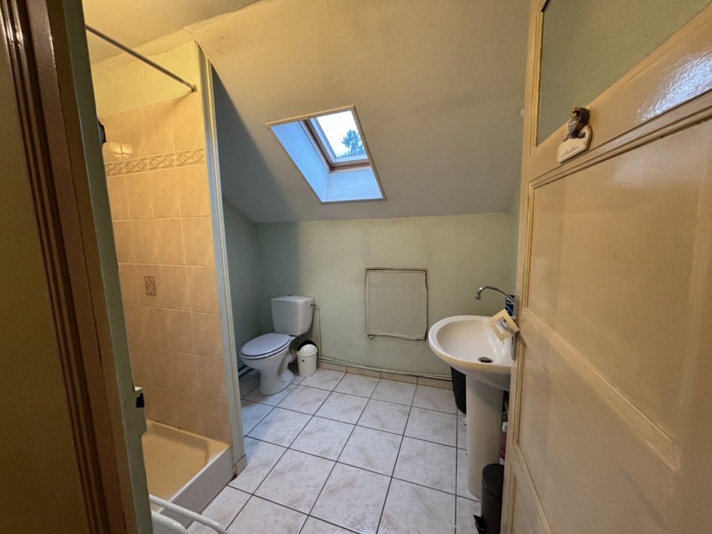 A l'étage une entrée, une cuisine, une terrasse, un salon séjour, un wc, une salle de bain, un couloir, deux chambres.