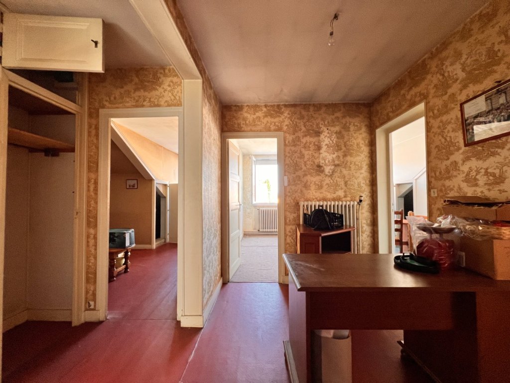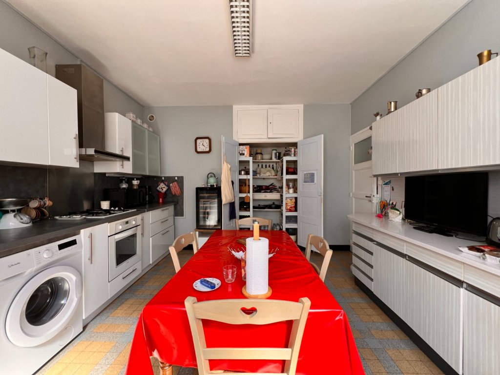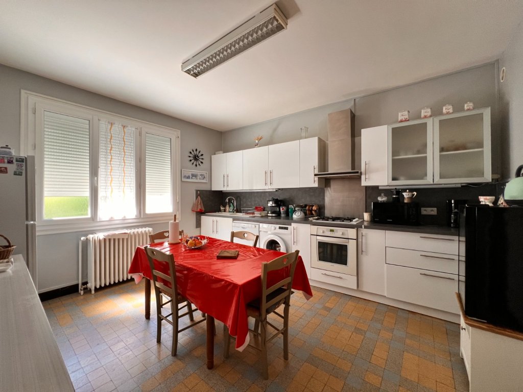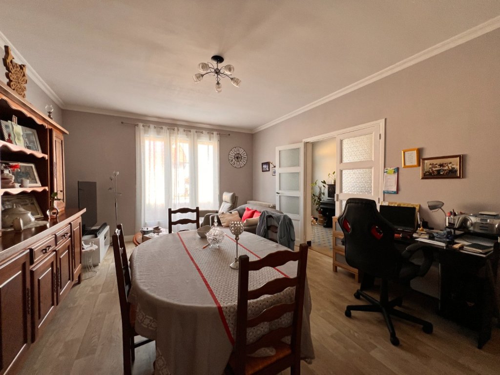 Quartier Saint Jean : Maison d'habitation comprenant une entrée, deux chambres, un salon, une cuisine, une salle de douche avec wc et une buanderie. A l'étage, un dégagement, trois chambres, une cuisine, une salle de bain, un débarras et un WC. Un sous-sol avec dégagement, un atelier, une cave et une chaufferie. Cour sur le côté et à l'arrière de la maison avec un garage. Nombreux travaux récents dont portail et porte de garage automatisés, fenêtres PVC double vitrage et chauffage central au gaz. Le tout sur un terrain de 339m².