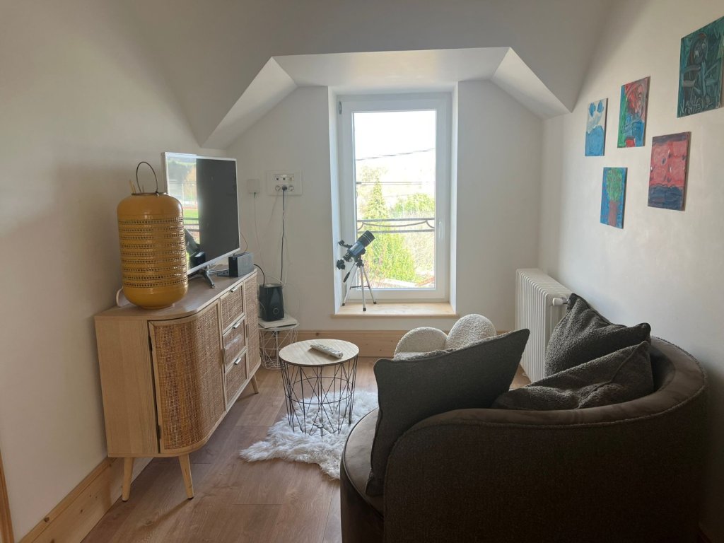 À l'étage, un palier lumineux propose un coin TV convivial, ainsi que quatre chambres, dont deux disposent de leur propre salle de bain et WC, parfaites pour accueillir vos invités ou vos enfants.