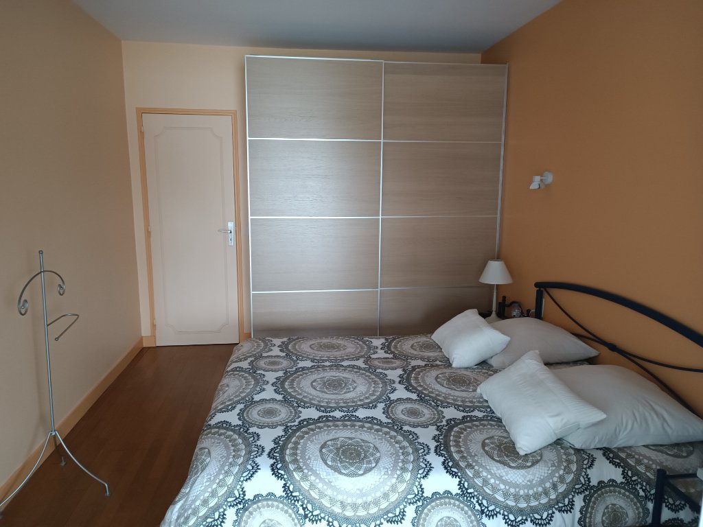 A l'étage: cuisine aménagée et équipée, pièce de vie de 66.40 m2 , 3 chambres avec rangements, salle de bain, WC.