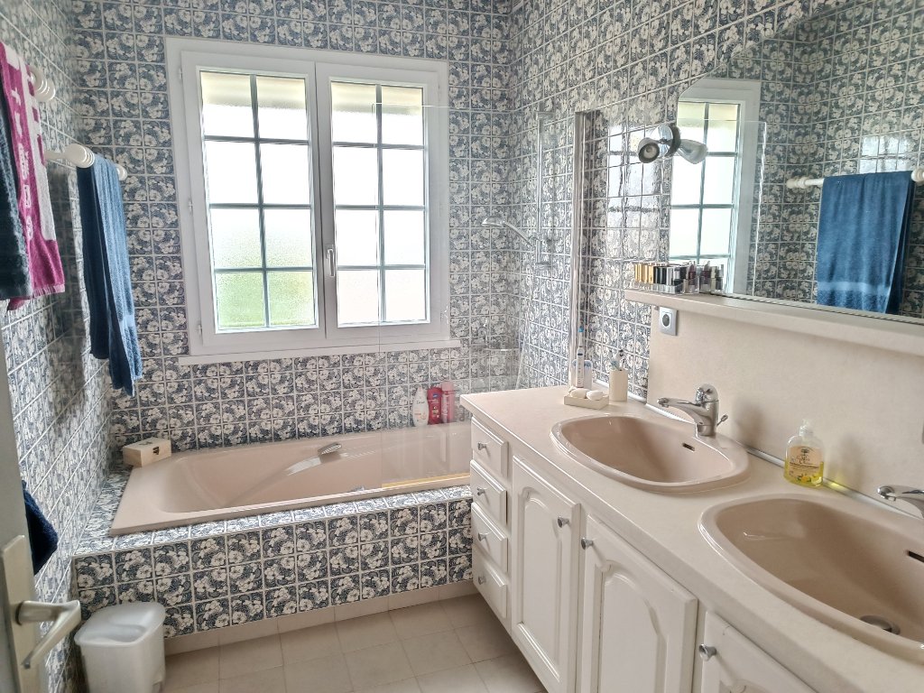 Au sous sol : hall d'entrée avec de larges rangements, vaste pièce de 34m2 avec bar, buanderie avec salle d'eau douche et WC, chaufferie et cellier, Garage de 48 m2 et cave à vin .