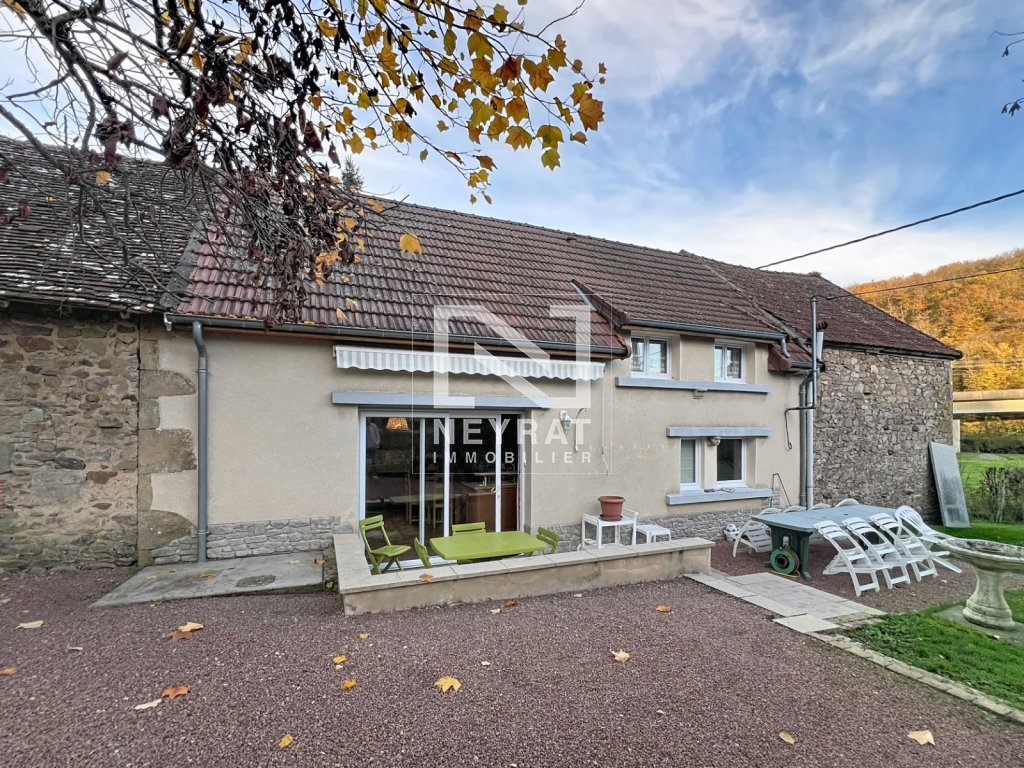 EXCLUSIVITE NEYRAT ! AUXY - secteur BAS DE CANADA : Maison rénovée et comprenant une pièce de vie avec cuisine ouverte, un garage/cellier et une salle de douche/WC. A l'étage, une grande mezzanine, une chambre et un WC. Rénovation de qualité, poêle à granulés et extension possible de la surface habitable en acquérant les deux dépendances de chaque côté de la maison. Joli terrain plat et arboré de 1184m² à l'avant de la maison. NEYRAT Immobilier AUTUN - Denis CONTASSOT : 0617335656.