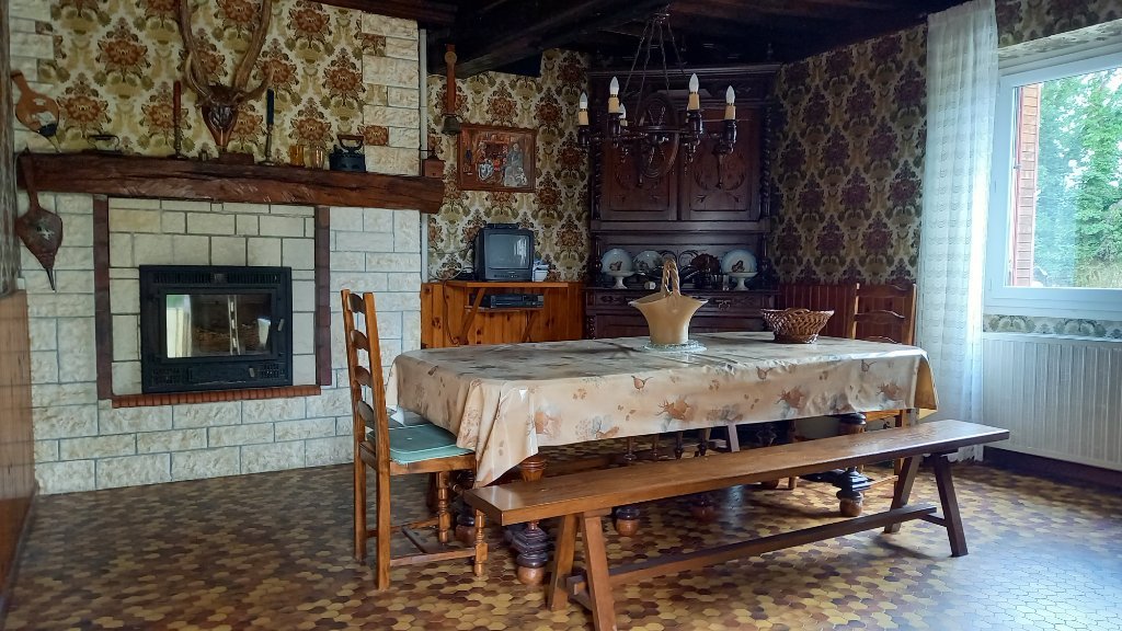 Une cuisine, une salle à manger avec insert bois, 2 chambres, une salle d'eau avec WC.