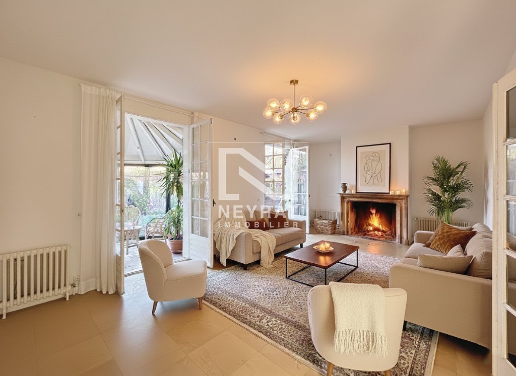 Le vaste séjour de 45 m², sublimé par une cheminée, s'ouvre harmonieusement sur une véranda baignée de lumière et tournée vers le jardin. Une cuisine, trois chambres, une salle de bain et un WC séparé complètent ce niveau.