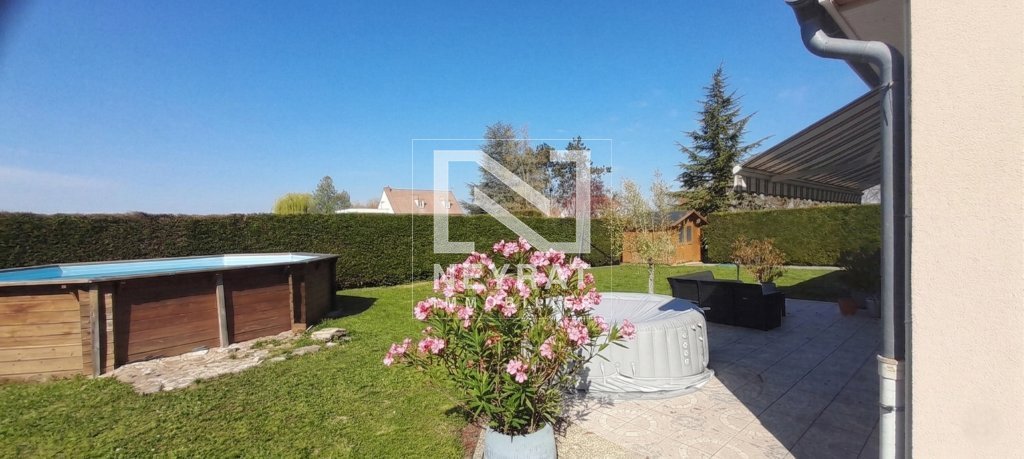 À l'extérieur, le terrain clos d'environ 900 m² accueille une piscine hors sol et un cabanon. L'ensemble est entièrement fermé, avec portail électrique et portillon, pour un accès pratique au quotidien.