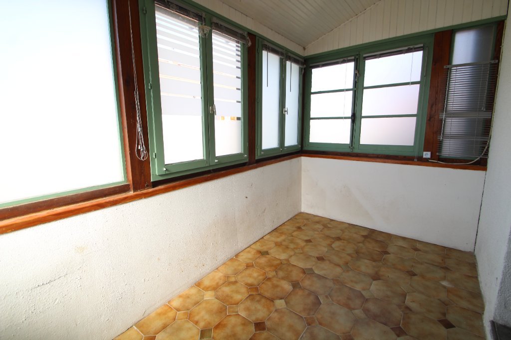 Cette maison mitoyenne d'un côté, à rénover, vous propose de plain pied, une entrée véranda accédant directement à une grande cuisine.