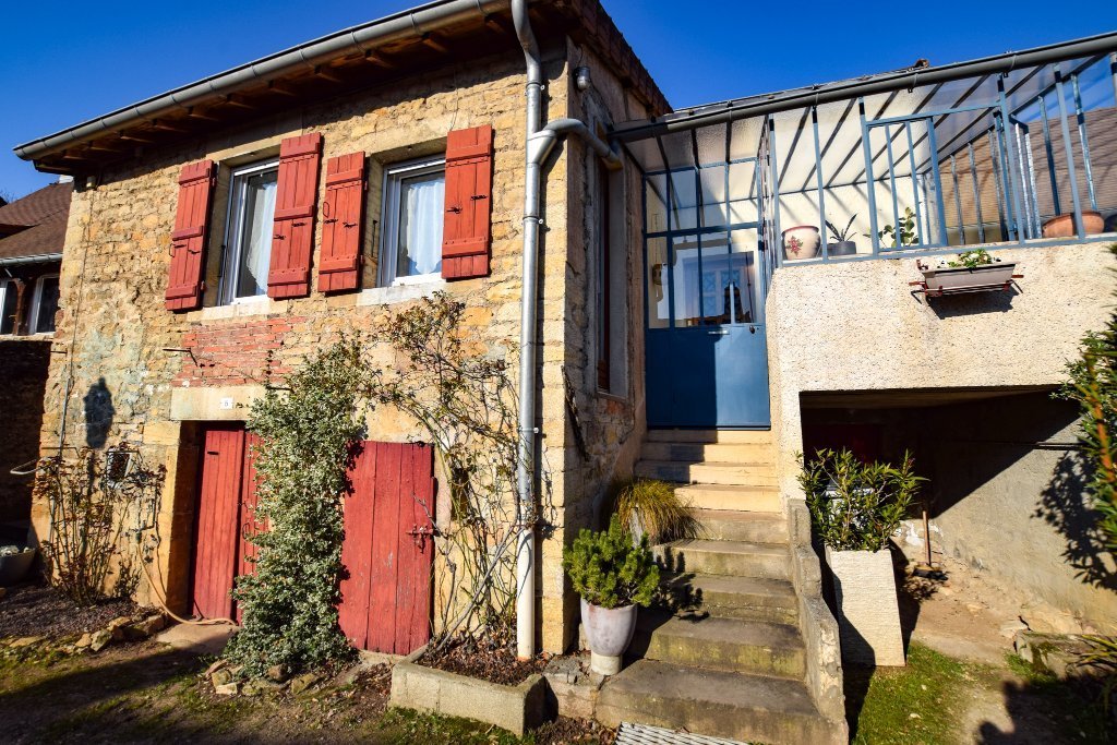 Au coeur de Buxy, cette jolie maison en pierres élevée sur caves, est composée
