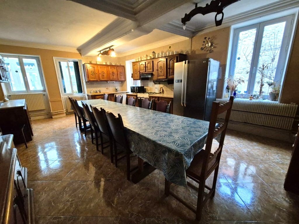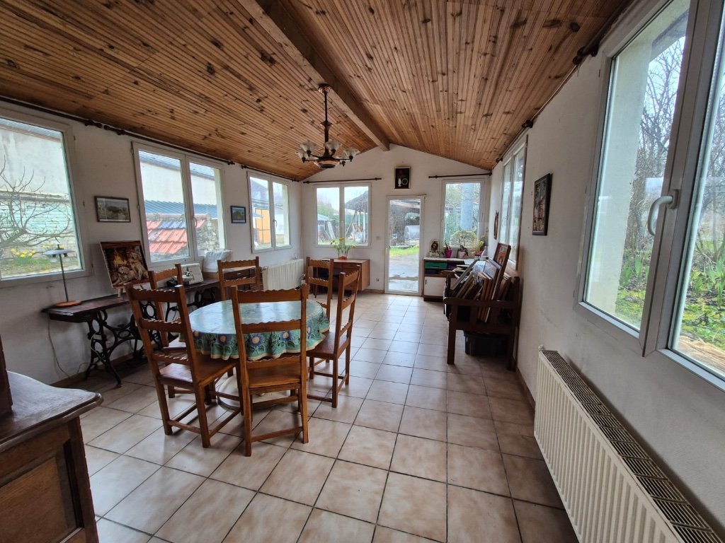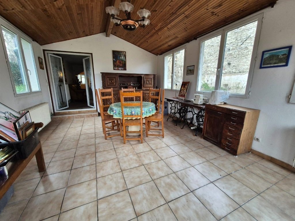 Idéalement située à quelques pas du centre-ville, cette propriété de 195 m² séduit par son caractère et ses nombreuses possibilités d'aménagement. Élevée sur deux caves voûtées, elle offre un cadre de vie spacieux et modulable. Dès l'entrée, une véranda mène à une vaste cuisine équipée à moderniser, ouverte sur un salon chaleureux avec cheminée. Un second salon, baigné de lumière, s'ouvre directement sur l'extérieur, offrant un accès privilégié au jardin. Pour plus de confort, une salle de bains, des toilettes et un espace chaufferie complètent ce niveau. À l'étage, un dégagement dessert trois grandes chambres, dont l'une bénéficie d'un accès extérieur, ainsi qu'une salle de bains avec WC. Sous les combles, une mezzanine mansardée accompagne deux chambres supplémentaires, portant le nombre total à cinq. Côté confort, la maison est équipée d'une pompe à chaleur, d'une chaudière à gaz, d'un insert à bois et de fenêtres en double vitrage PVC, garantissant une efficacité énergétique en toute saison. À l'extérieur, le vaste terrain d'environ 2100 m², entièrement clos et sécurisé par un portail motorisé, offre un cadre idéal pour profiter du jardin. Une grange d'environ 200 m², aménageable en garage, ainsi qu'un appentis de rangement viennent compléter cet espace. Ce bien rare, à proximité immédiate de toutes les commodités, allie charme, volume et potentiel exceptionnel. Une opportunité à ne pas manquer !