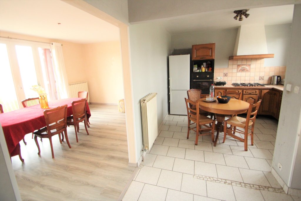 Exclusivité Neyrat. Virey le grand. Située au calme, dans un village agréable avec écoles et commerces de proximité, à 10 minutes de Chalon. Maison traditionnelle des années 1970, d'une superficie totale de 143m². Au premier étage, une entrée, un séjour parqueté d'environ 26m² avec balcon exposé ouest, une cuisine aménagée, deux chambres de 10m² et 14m² avec placards, une salle d'eau, un wc séparé. Au rez-de-chaussée, une buanderie / cuisine d'été, une chambre de 11m², une cave, un placard, une chaufferie et un espace garage pour moto et rangements. Terrain de 767m² exposé sud-est. Puit et grenier. Beau potentiel.