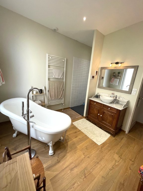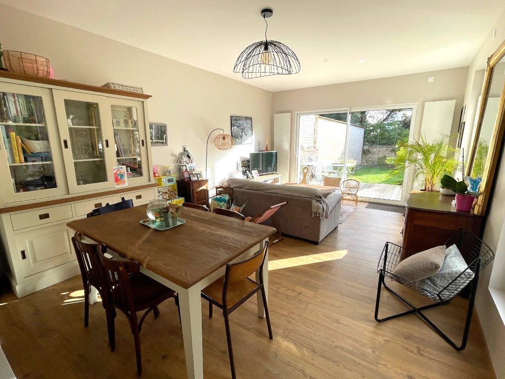Au rez-de-chaussée, une entrée donnant sur une buanderie, cuisine ouverte sur salon séjour, wc. A l'étage, deux chambres, une suite parentale avec salle de bain et douche avec un grand dressing, wc. Garage avec porte électrique. Jardin de 70 m2 avec terrasse bois sans vis-à-vis au calme !