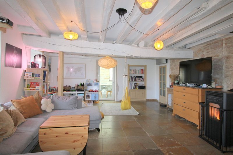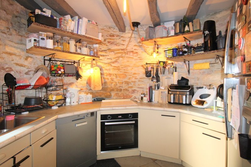 Côté prestations; mélange de matériaux d'époque (poutres apparentes, pierres de Buxy, colombages, murs en pierre) et de confort moderne (poêle à granulé, climatisation réversible, plancher chauffant côté véranda).