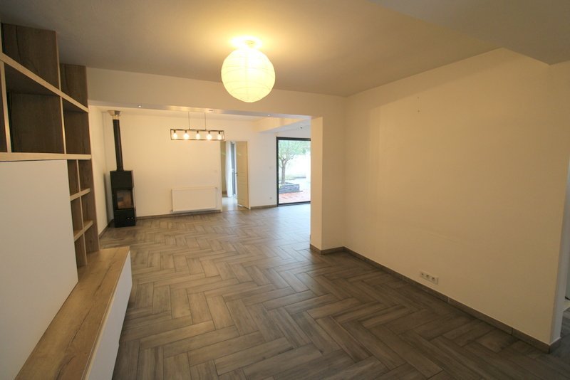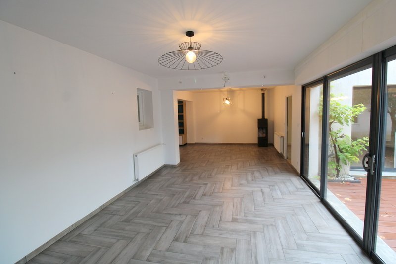 Le tout sur un terrain clos et arboré de 526 m2 avec un grand patio fermé, un garage et un atelier.