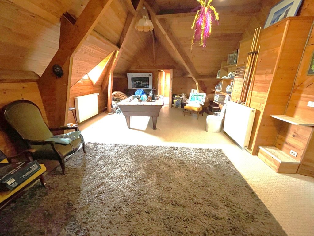 A l'étage, une belle mezzanine, desservant trois chambres, une salle de bain, un wc, une belle salle de jeux et un grenier.