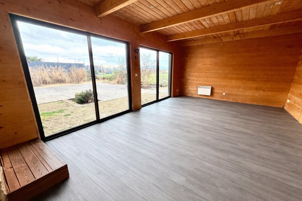 Dans le prolongement de la pièce de vie, un espace indépendant en ossature bois de 27 m² offre de multiples possibilités d'aménagement : salon secondaire, bureau, chambre, salle de sport ou salle de cinéma.