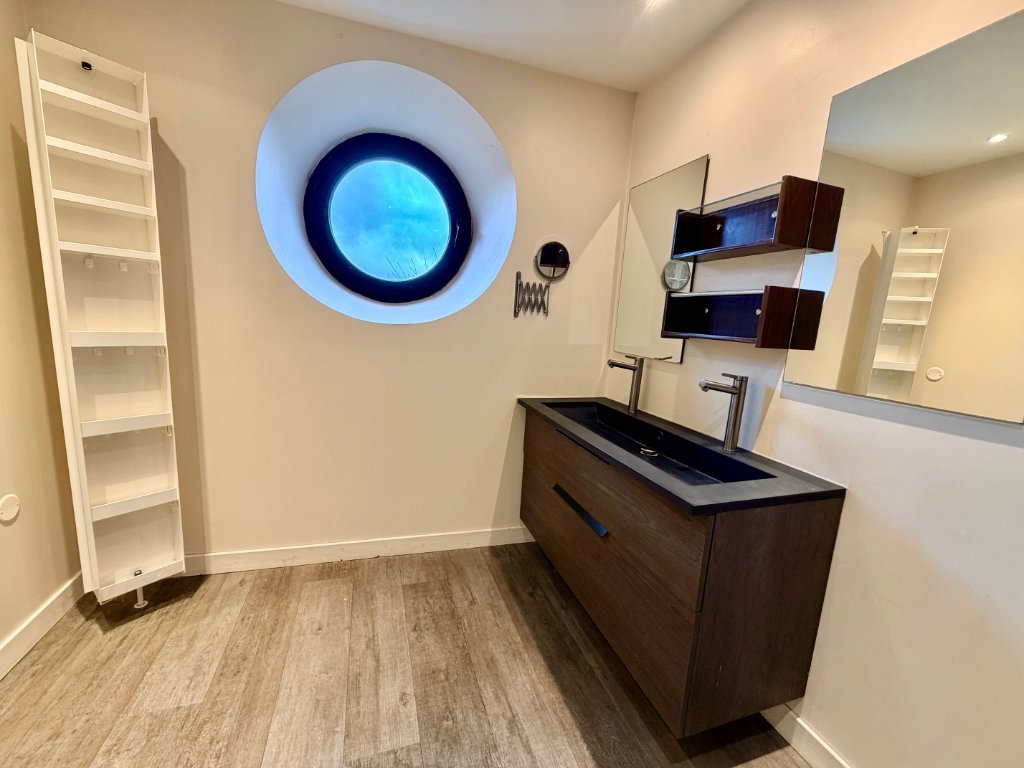 À l'étage, accessible par une mezzanine spectaculaire de 57 m² avec un espace bureau, une seconde suite avec salle d'eau, WC et dressing.
