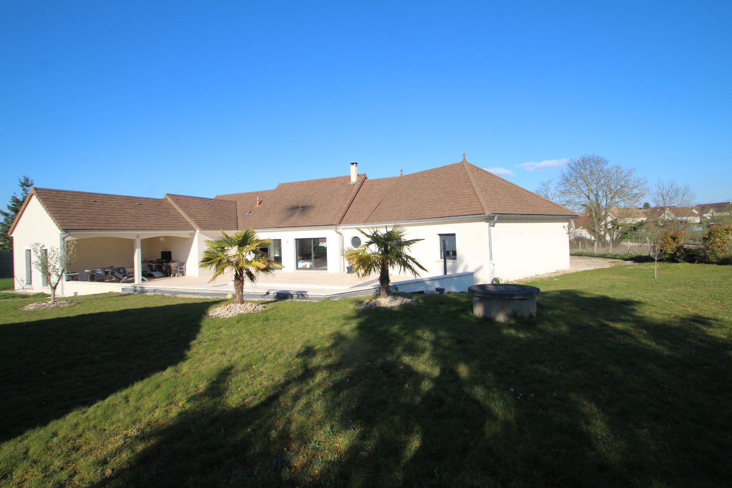 Dans un environnement calme à 15 minutes de Beaune, cette grande maison récente de plain pied, très fonctionnelle et de bonne facture, comprend un grand séjour donnant sur terrasse et piscine à l'abri des regards. Pool house avec cuisine d'été, 5 chambres avec leur dressing. 2 salles de bains, 2 wc, un cellier, un garage.