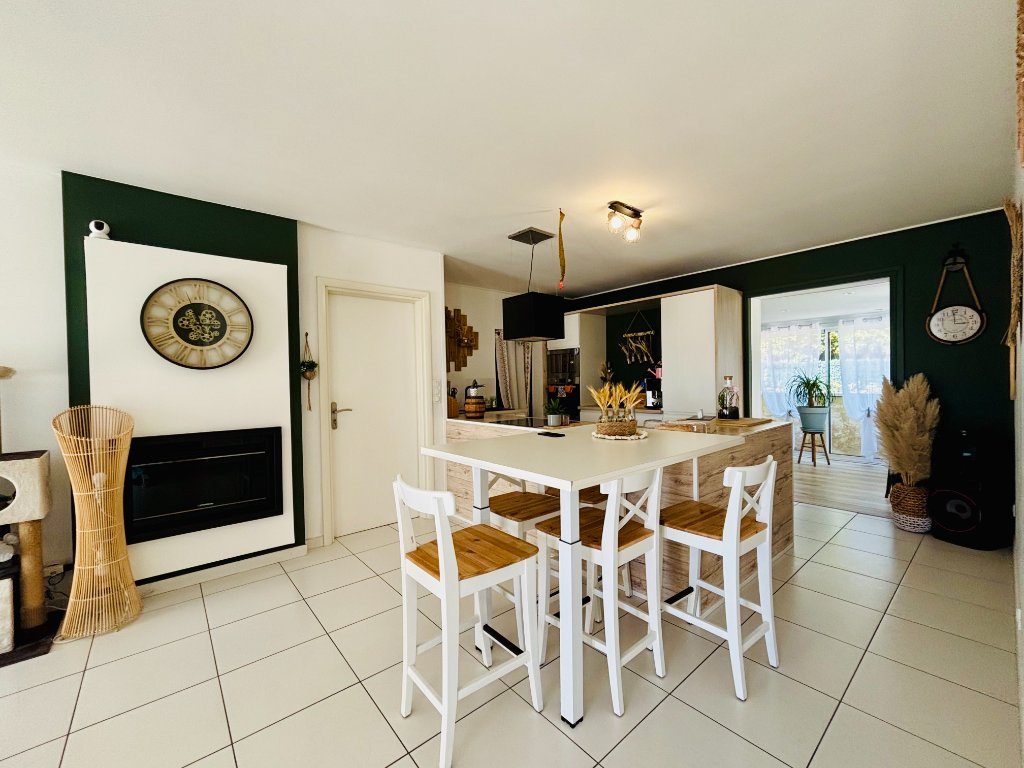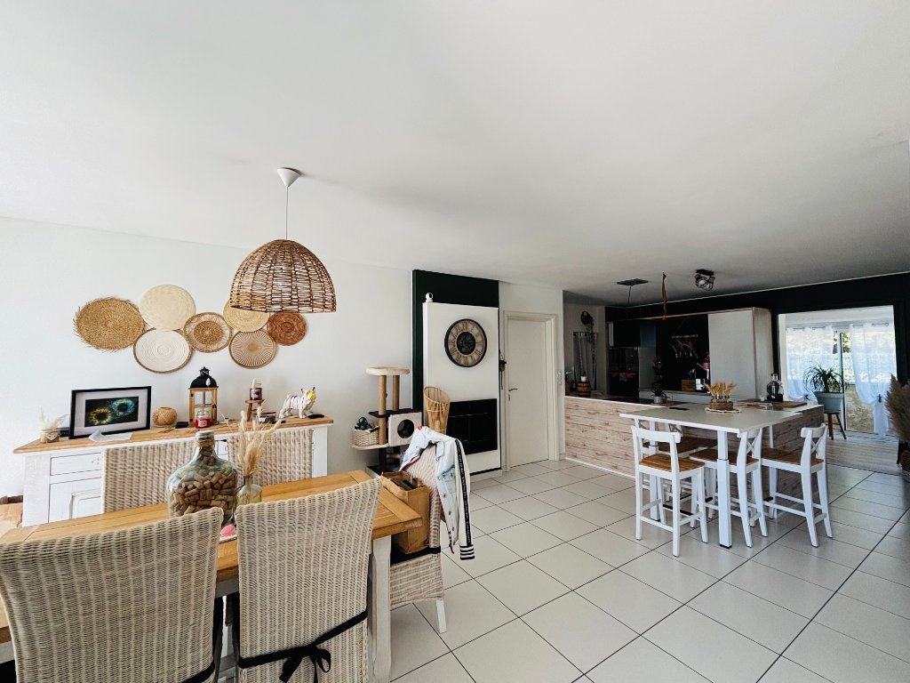 Découvrez cette charmante maison de plain-pied de 122 m², baignée de lumière, située dans un lotissement calme et sécurisé. Elle offre un espace de vie convivial avec un séjour ouvert sur une cuisine équipée et son cellier attenant, ainsi qu'un salon lumineux idéal pour vos moments de détente.