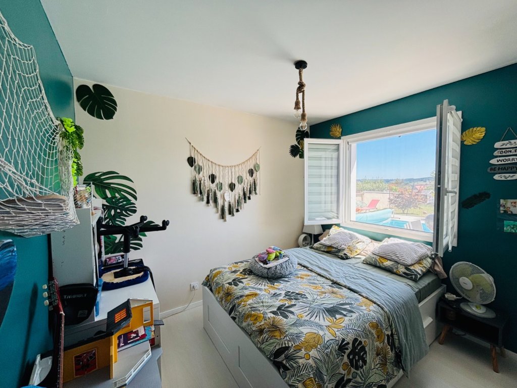 Le terrain clos et arboré de 771 m² accueille une piscine de 8 x 4 mètres, un véritable atout pour vos journées estivales. Un portail électrique avec visiophone assure un accès sécurisé au garage, accessible depuis une cour en enrobé.