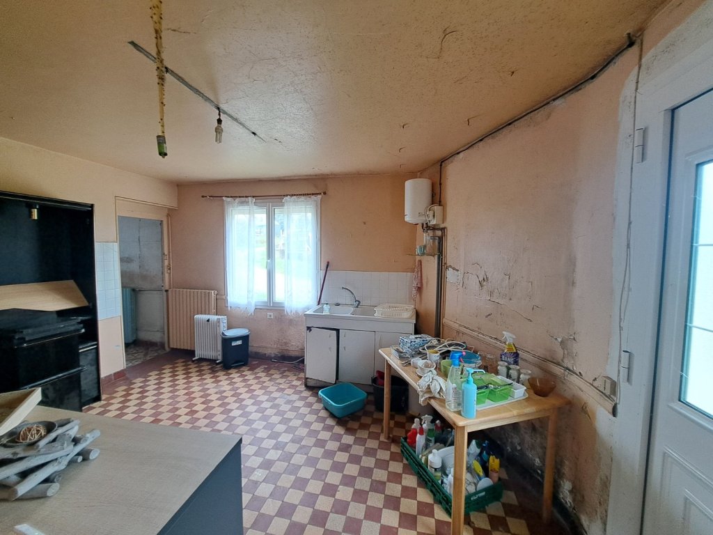 À rénover selon vos envies, elle se compose d'un spacieux salon, d'une cuisine, d'une arrière-cuisine, de deux chambres et d'une salle d'eau avec WC.