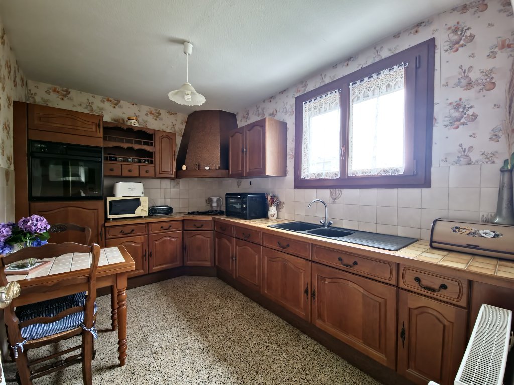 Quartier pavillonnaire proche écoles et commerces, maison de 109,30 m² habitables environ, comprenant un séjour double, une cuisine, deux chambres, une salle d'eau et un WC. dégagement avec placards.