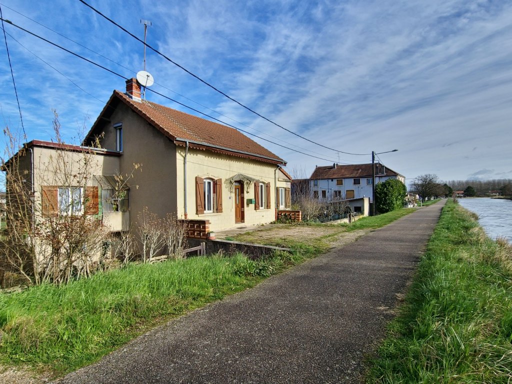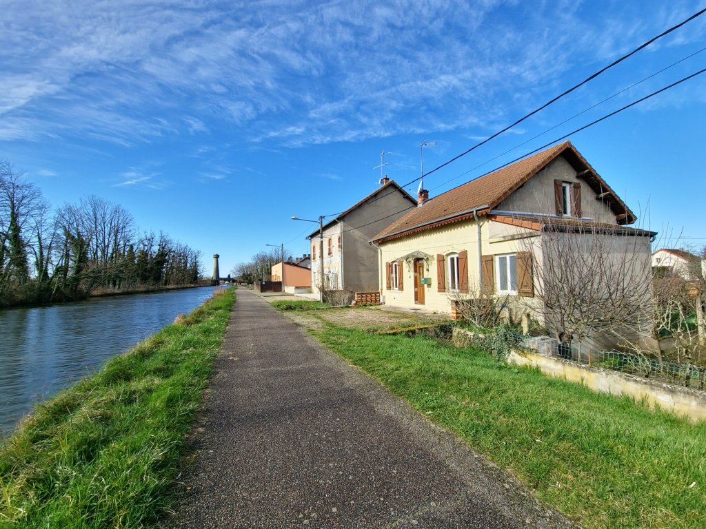 Face au canal et la piste cyclable, agréable maison lumineuse avec salon - séjour, cuisine, 4 chambres (dont 2 en rez-de-chaussée), salle de bains, WC à chaque niveau. La maison a trois entrées différentes, ce qui permettrai de la diviser en plusieurs logements pour un projet locatif ou gîtes.