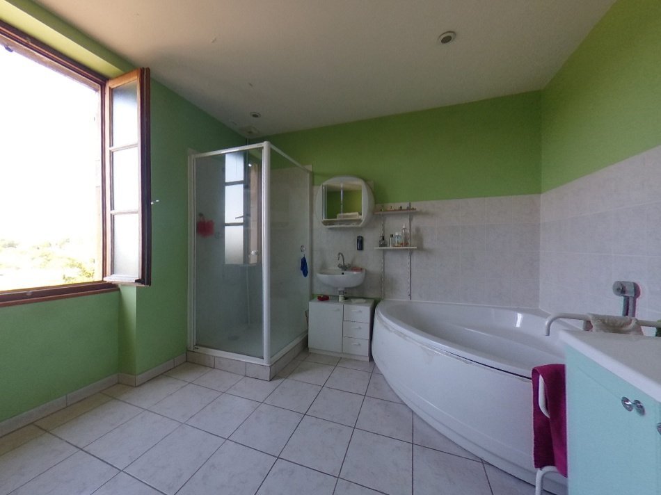* au 1er étage, un palier, un couloir, trois chambres, une salle de bain avec douche, un wc