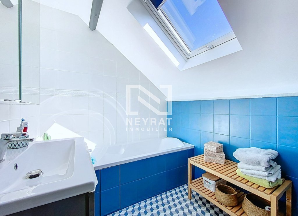 - À l'étage : Un espace nuit composé de deux chambres cosy sous combles climatisés et d'un bureau ouvert sur le palier, idéal pour le télétravail ou pour une quatrième chambres. Une salle de bain et WC complète l'étage.