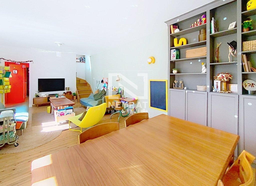 Un cadre de vie authentique dès le pas de la porte franchi, l'atmosphère est à la fois chaleureuse et fonctionnelle. La cuisine, véritable cœur battant de la maison, un espace convivial où s'orchestrent petits-déjeuners savoureux et des moments pleins de vie. Le vaste salon-séjour, baigné de lumière, est un espace de vie généreux où se mêlent détente et convivialité. Une salle de bains fonctionnelle assure le confort de toute la famille avec baignoire et douche.