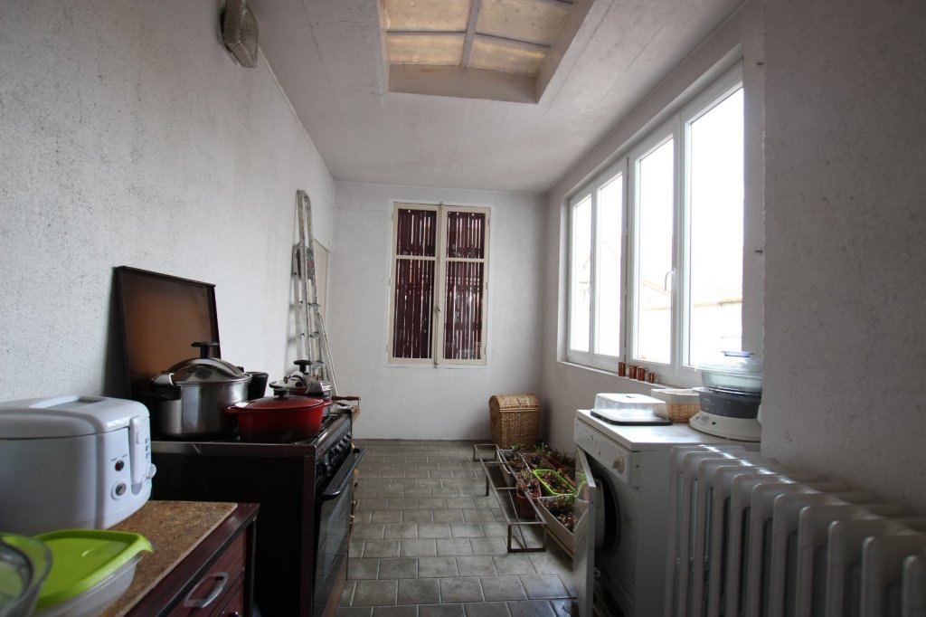 - au premier étage : un palier desservant une cuisine, une salle de bains, un séjour/salon, une pièce à usage divers, une buanderie, une véranda, un WC et une cave. Accès direct à la cour.