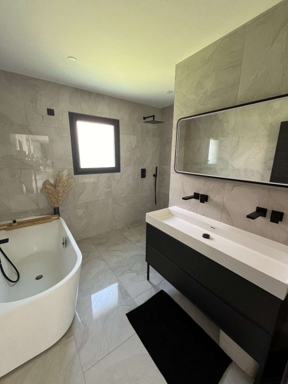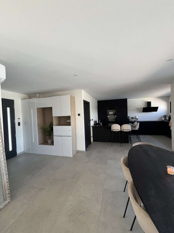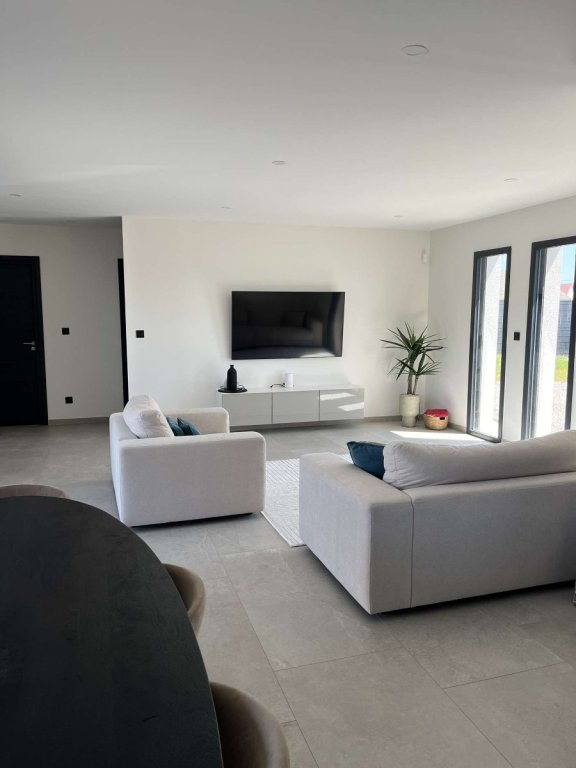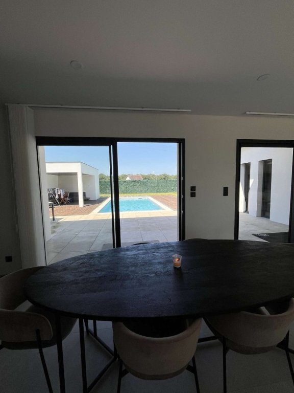 Cette maison neuve offre des prestations de qualité et une conception moderne et lumineuse. Elle dispose d'un chauffage au sol avec pompe à chaleur, climatisation, respect des normes RT 2012. La villa comprend une cuisine entièrement équipée de qualité ouverte sur un salon/salle à manger spacieux et lumineux, 4 chambres, dont une suite parentale avec dressing et salle de douche privative, une buanderie, 2 toilettes séparés et une salle de bains. À l'extérieur, une piscine et d'un pool house. Garage.