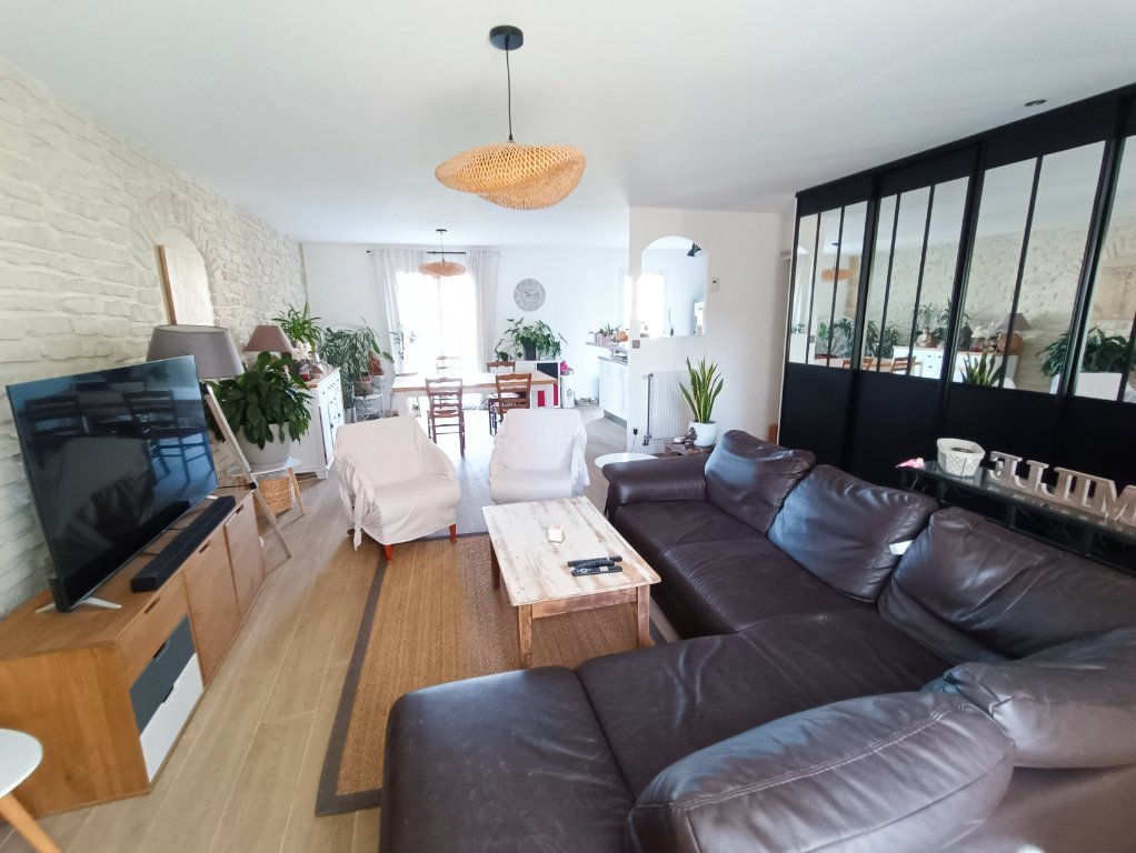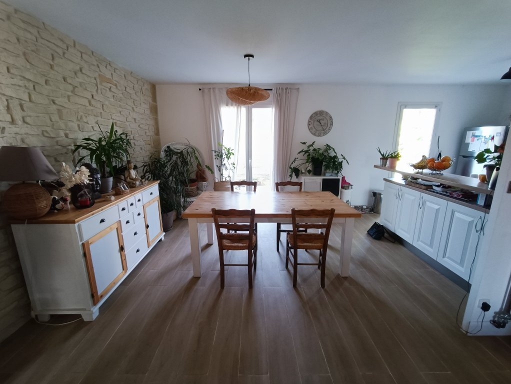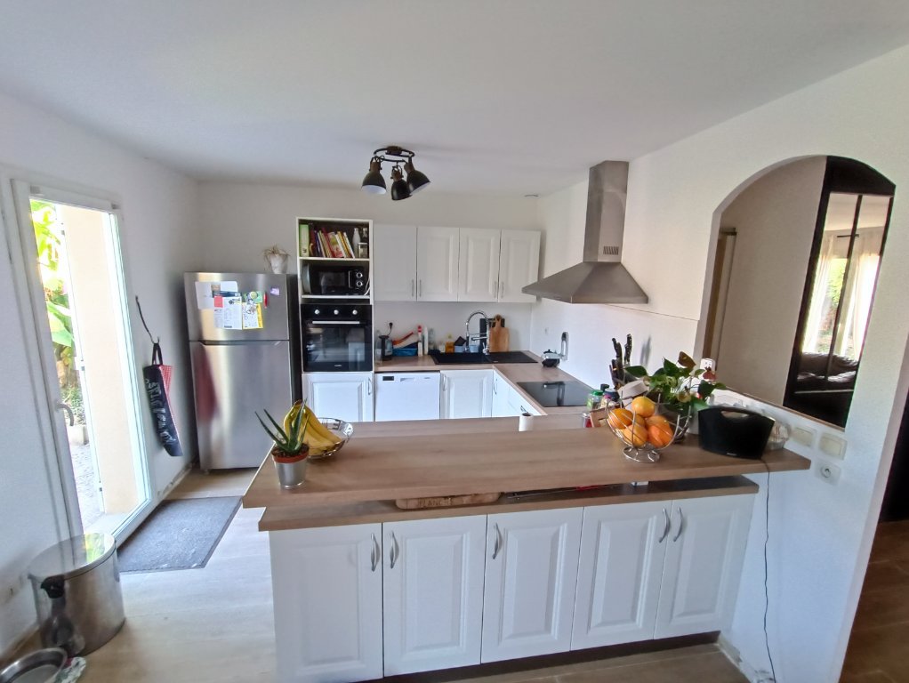 La maison se compose d'une cuisine aménagée et équipée ouverte sur un vaste séjour chaleureux et sur la terrasse.
