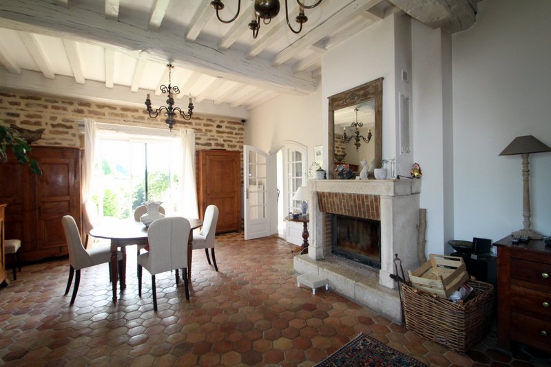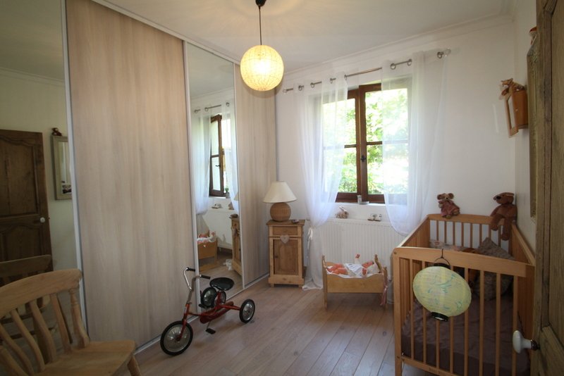-A l'étage un salon, une salle d'eau avec WC, un couloir, un placard et trois chambres.