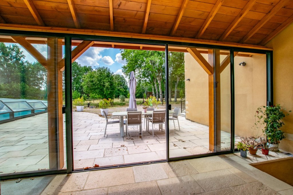 La deuxième partie de la maison, accessible par une véranda, révèle une cuisine d'été donnant sur l'espace piscine, deux chambres parentales supplémentaires, dressing, salle de douche. Idéal pour loger famille ou amis.
