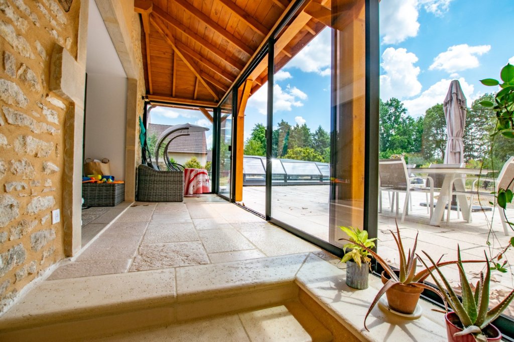 La deuxième partie de la maison, accessible par une véranda, révèle une cuisine d'été donnant sur l'espace piscine, deux chambres parentales supplémentaires, dressing, salle de douche, et la possibilité d'une 5ème chambre. Idéal pour loger famille ou amis.
