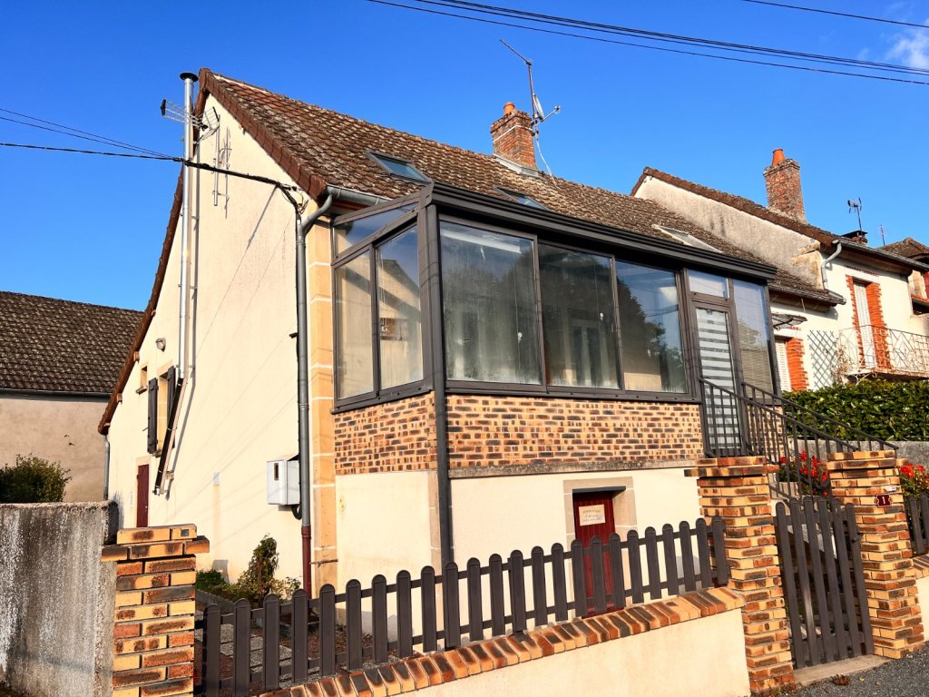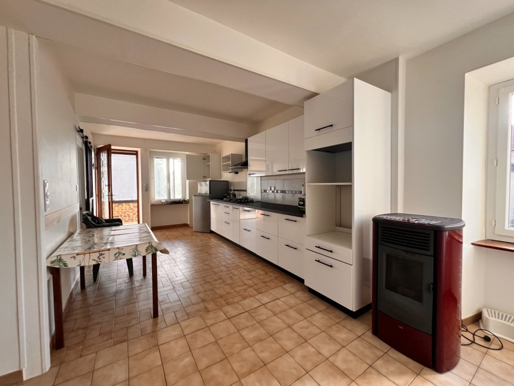 IGORNAY, Maison mitoyenne au cœur du village comprenant une véranda, une cuisine équipée ouverte sur la salle à manger, un salon, une chambre avec une salle de bains et un WC.
